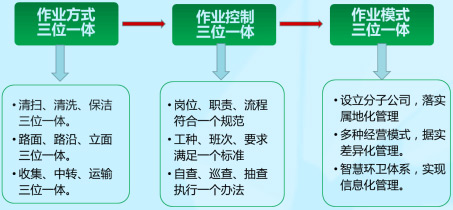 道路清掃保潔、垃圾收集清運,環境衛生一體化服務、園林綠化一體化服務、城鄉環衛一體化服務、公共物業管理一體化服務及PPP業務。